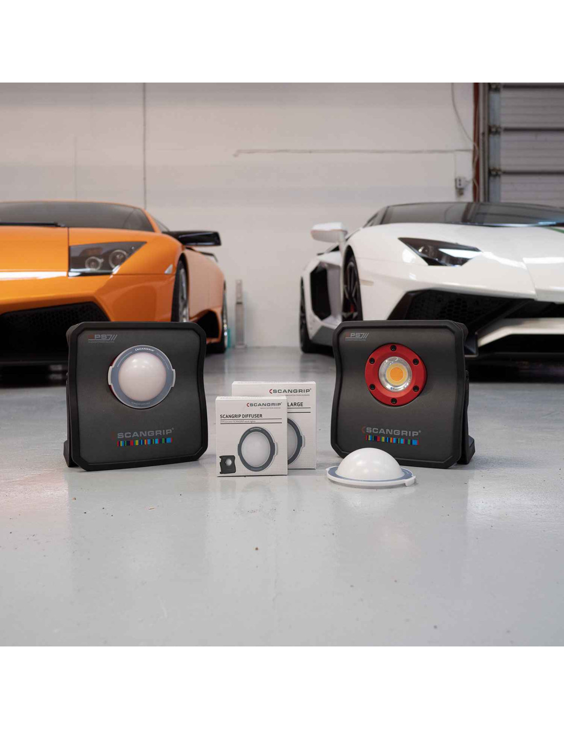 Using the SCANGRIP DIFFUSER together with MULTIMATCH 8 increases the functionality of the work light significantly as the diffuser softens and spreads the light on the surface of the car, so you avoid the glare and hard shadows from the light. The SCANGRIP DIFFUSER is especially applicable for checking high spots while coating, as well on car dent repair and detecting dust nibs on painting.