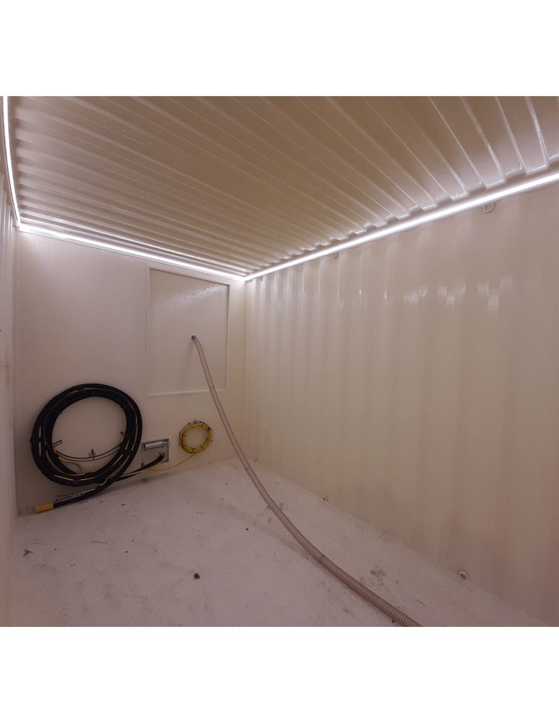 - Lighting via LED projectors installed perimetrically throughout the container. Total power less than 1 kW.