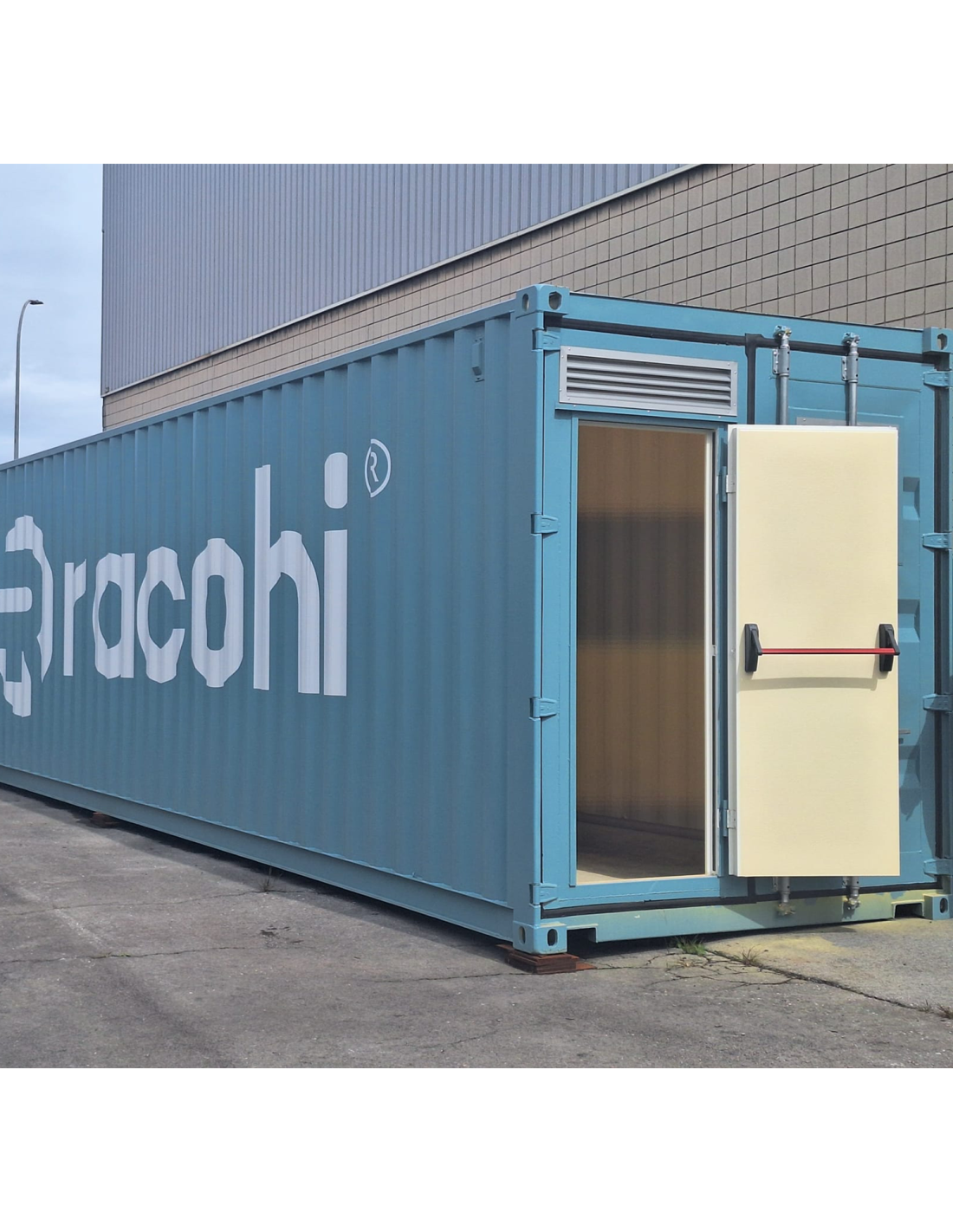 The enclosure consists of a standard 40-foot container, fully transportable. Manufactured according to ISO container standards ISO 668, ISO 830, ISO 1161, ISO 1496-1, ISO 6346. Suitable for outdoor use with C3 paint.