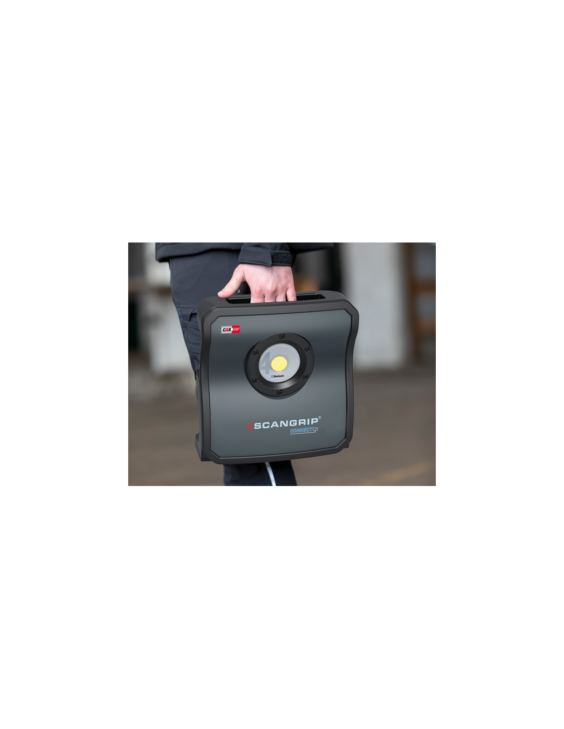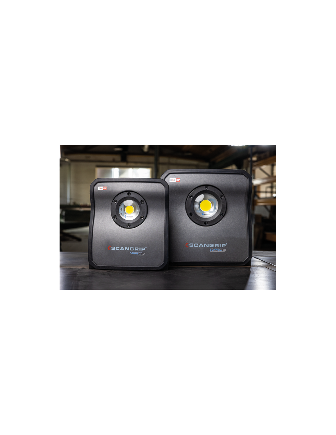 With the user-friendly BLUETOOTH light control app, you get an extraordinary possibility to turn on/off and control up to four work lights through a mobile device. The built-in dimmer function enables you to adjust the light output into five different levels. This feature saves time from manual operation and increases work efficiency on a daily basis. It is designed with a display for battery capacity and lumen output level, and supplied with a built-in power bank. NOVA 4 CONNECT is extremely sturdy and waterproof (IP65). The design is elegant, with a carrying handle and a stand for flexible positioning and direct mounting on the SCANGRIP TRIPOD.