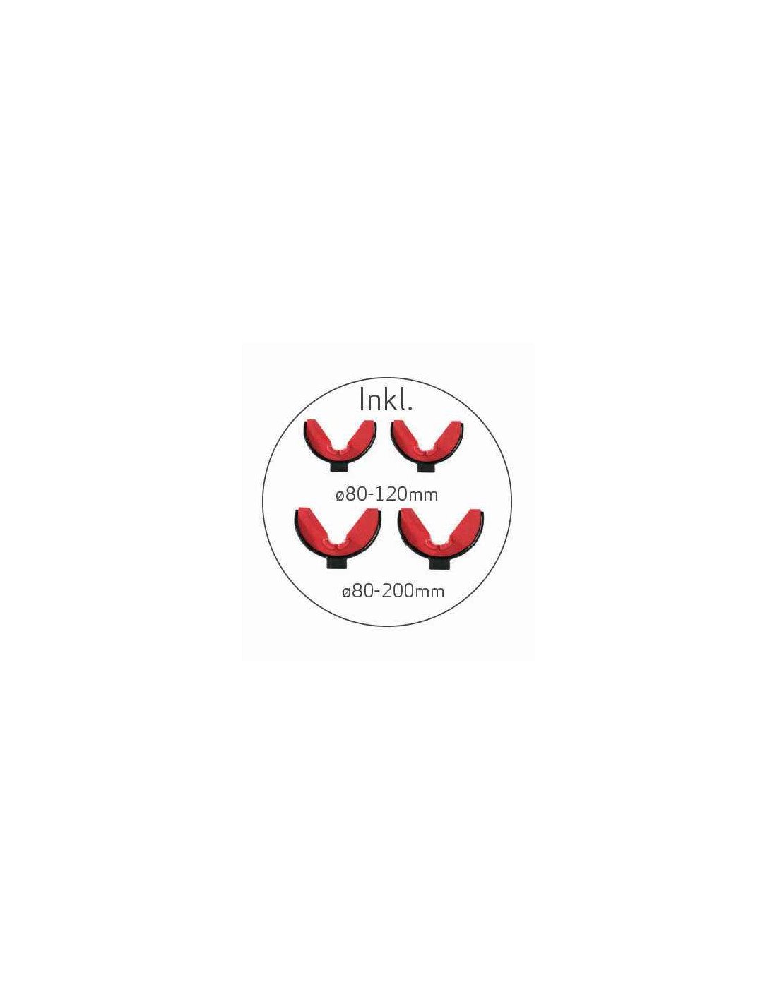 El nuevo compresor de muelles de suspensión McPherson CANVIK PLUS con mayor seguridad incluye 2 juegos de mordazas con insertos de poliuretano resistente (ø80-120 mm y ø80-200 mm).