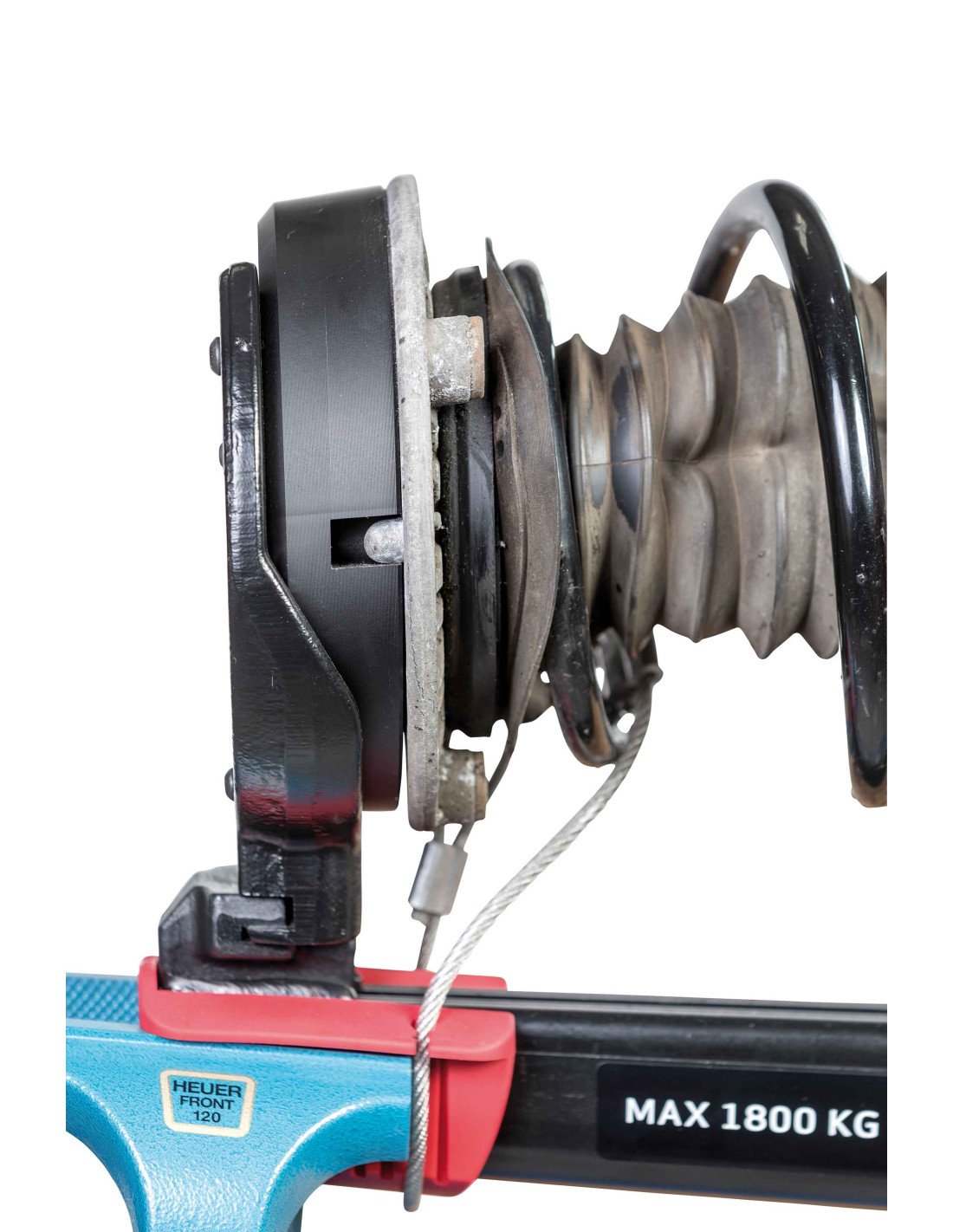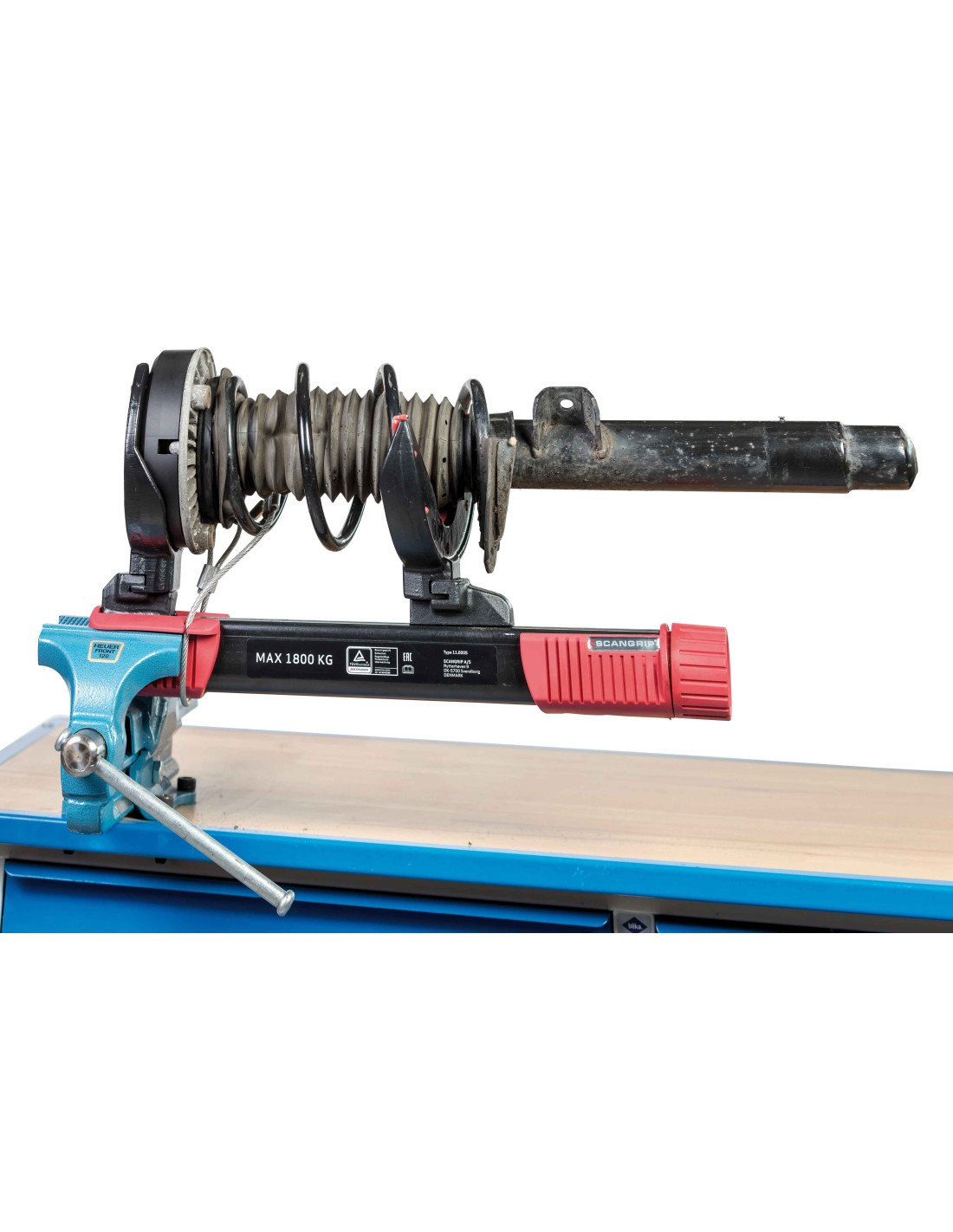 Inserta la mordaza especial en la parte superior del amortiguador mientras insertas la mordaza estándar en el resorte lo más lejos posible desde la parte superior del amortiguador. De esta manera, se logra suficiente compresión para que el amortiguador de choque se libere.