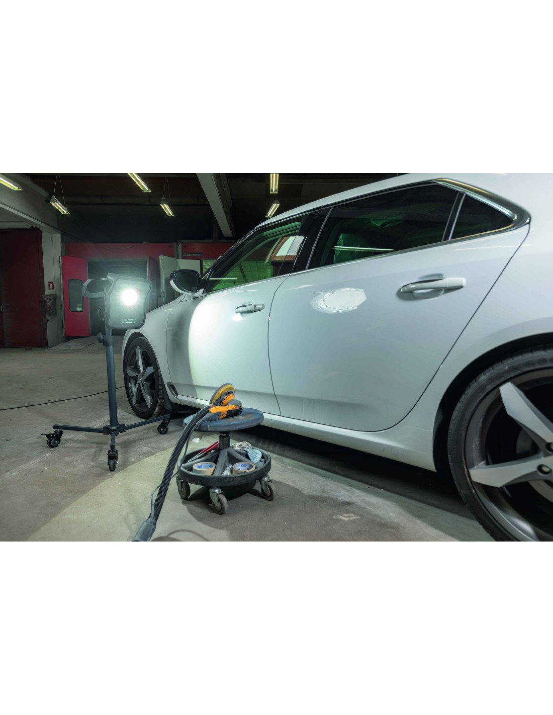 Luz de trabajo LED de alto CRI+ con solución ALL DAYLIGHT, BLUETOOTH y SPS para detalles de automóviles MULTIMATCH 8 es una excelente y potente luz de trabajo recargable que proporciona hasta 8000 lúmenes para la inspección de grandes superficies durante las operaciones de pulido, pintura y limpieza, así como para la combinación de colores.