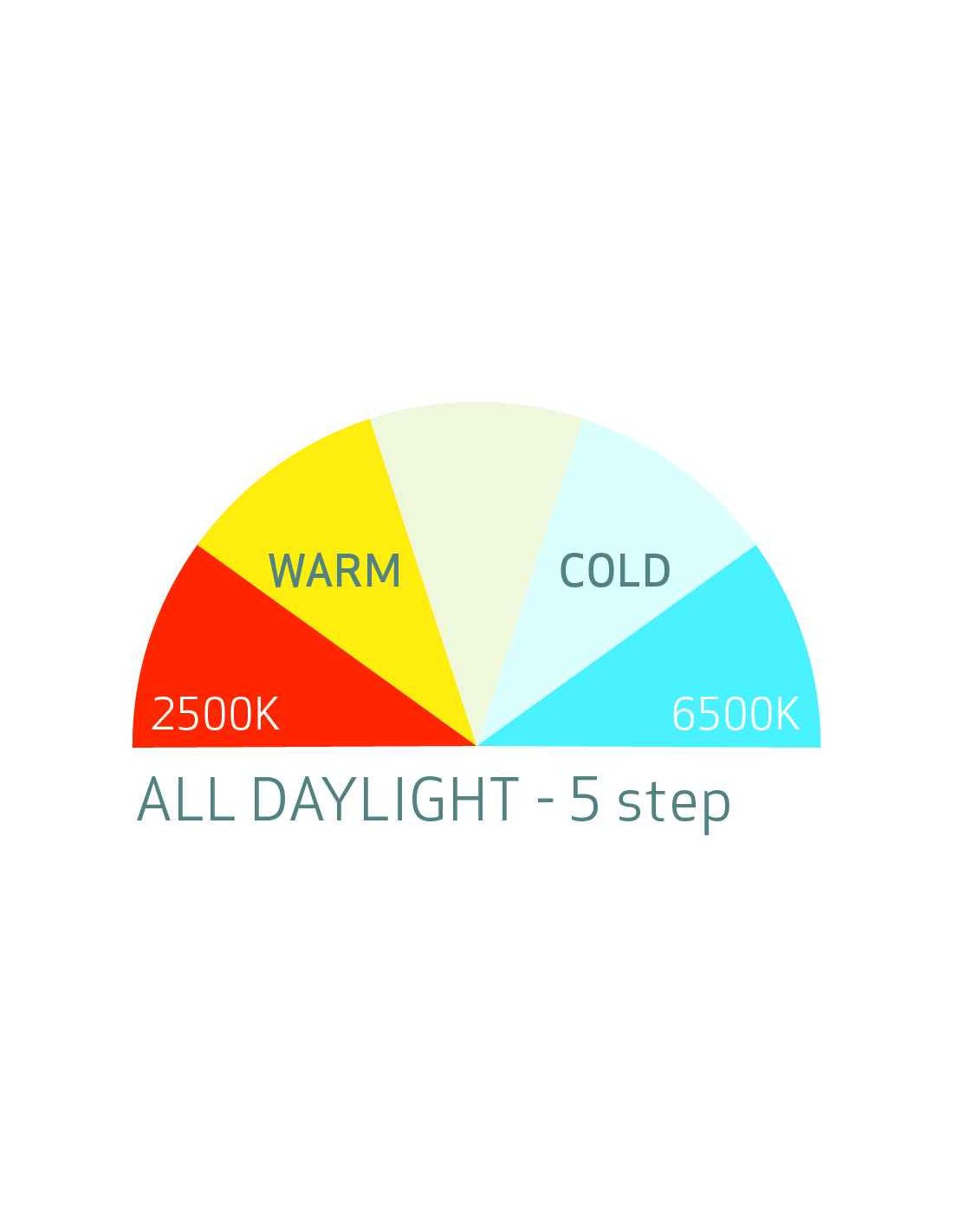 - Cuenta con la función ALL DAYLIGHT, que te brinda la opción de elegir entre 5 temperaturas de color diferentes