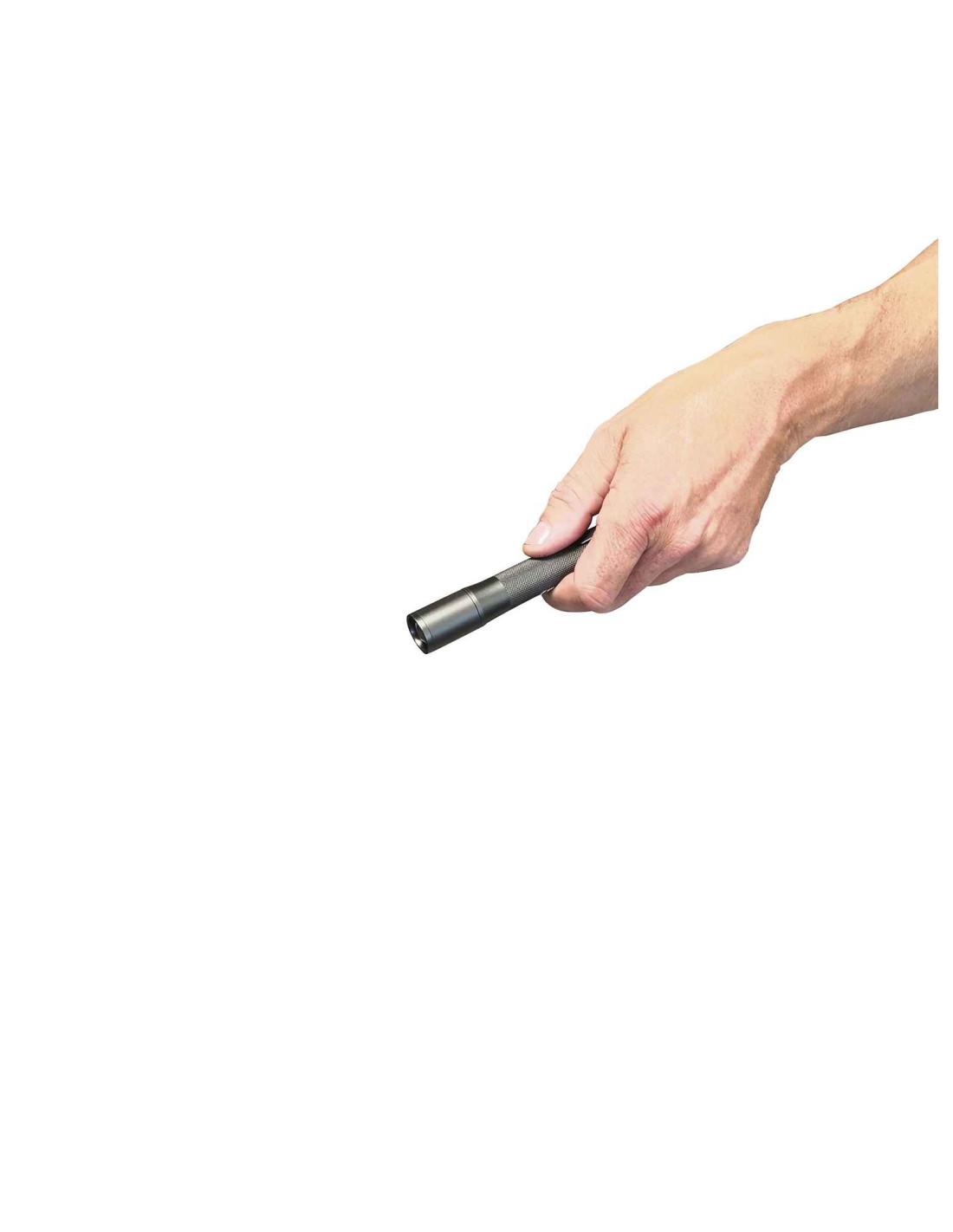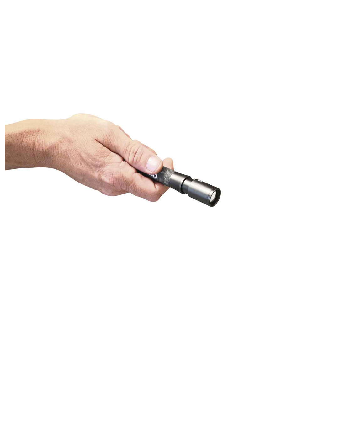 Se suministra con un clip y está diseñada para llevarla siempre en el bolsillo del pecho, al alcance de la mano. La carcasa está hecha de aluminio anodizado para una alta durabilidad y un agarre ergonómico y seguro. Impermeable, IP54.